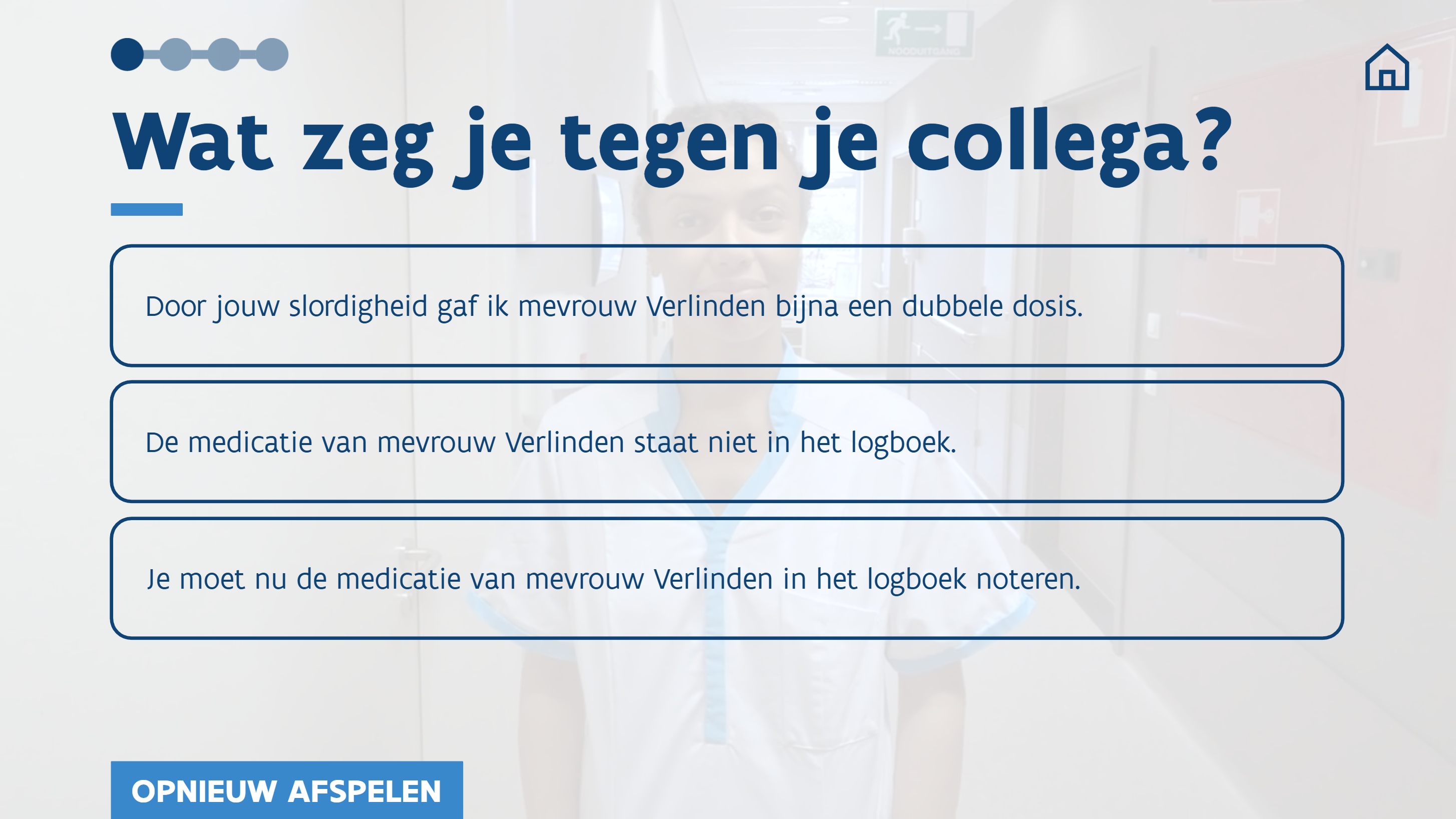 Daarbij zorgen we voor herkenbare personages en contexten die aansluiten bij de dagelijkse praktijk van de doelgroep.
